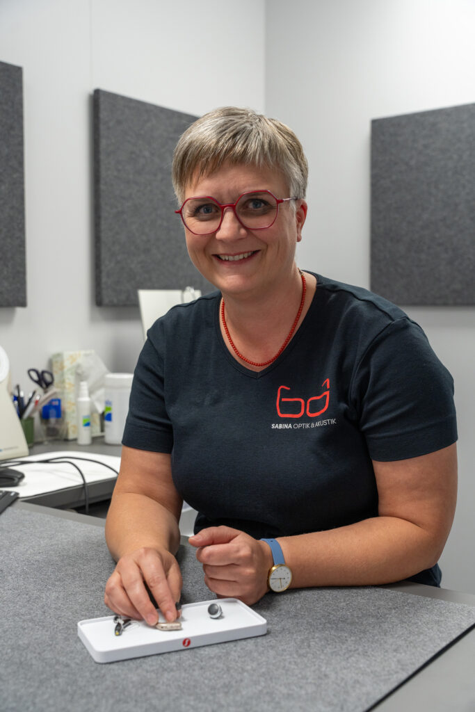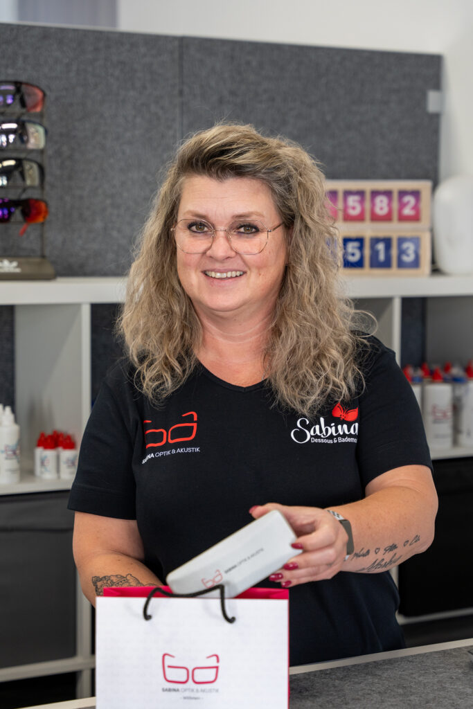 Ich heiße Sabina Schmitt, bin gelernte Augenoptikermeisterin und habe das Geschäft in Wöllstein im Frühjahr 2021 übernommen, renoviert und modernisiert und führe es mit tollen Mitarbeiter:innen in die Zukunft. Damit habe ich ein altes Versprechen eingelöst, denn ich habe in genau diesem Geschäft einst gearbeitet und meinem damaligen Chef und Inhaber Dietmar Pfannebecker versprochen, einmal in seine Fußstapfen zu treten.